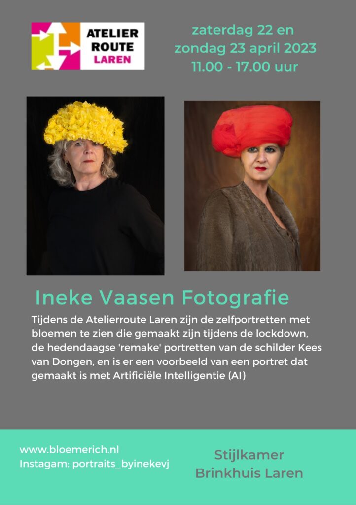 In de nieuwe Stijlkamer van het Cultureel Centrum Het Brinkhuis in Laren zijn mijn zelfportretten met bloemen en re-makes te zien van de schilder Kees van Dongen.